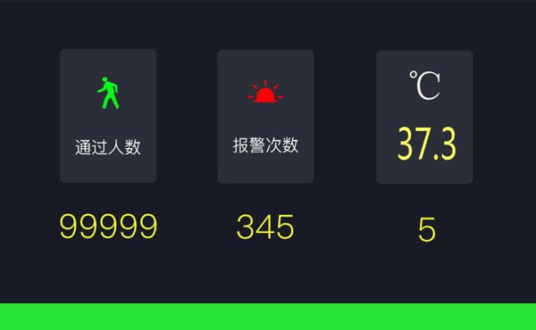 检测温度低于 37 摄氏度时,绿色文字显示,通过声响